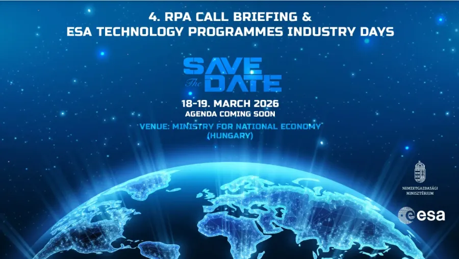 A Nemzetgazdasági Minisztérium és az Európai Űrügynökség közös szervezésében kerül megrendezésre 2026. március 18-19 között a 4. RPA felhívás tájékoztatójával egybekötött ESA ipari nap, amelyre Szolnoki Szabolcs - Technológiáért, Űriparért és Védelmi Iparért Felelős Helyettes Államtitkár úr tisztelettel meghívja Önt.
